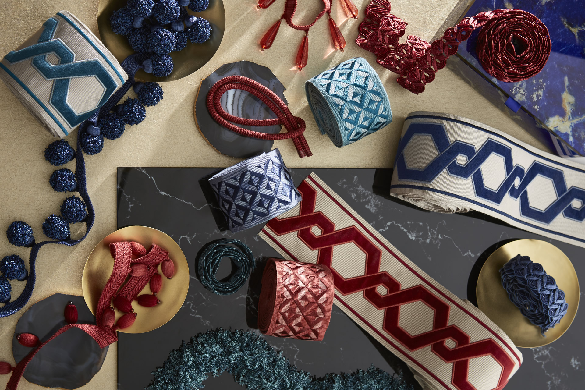 We carry a huge variety of patterns, textures and colours of fabric and trims from the finest mills and editors in the world. Some are in stock, as well as by special order. Our collections are the of highest quality and value. They will add the perfect finishing touch, to make your project truly unique.